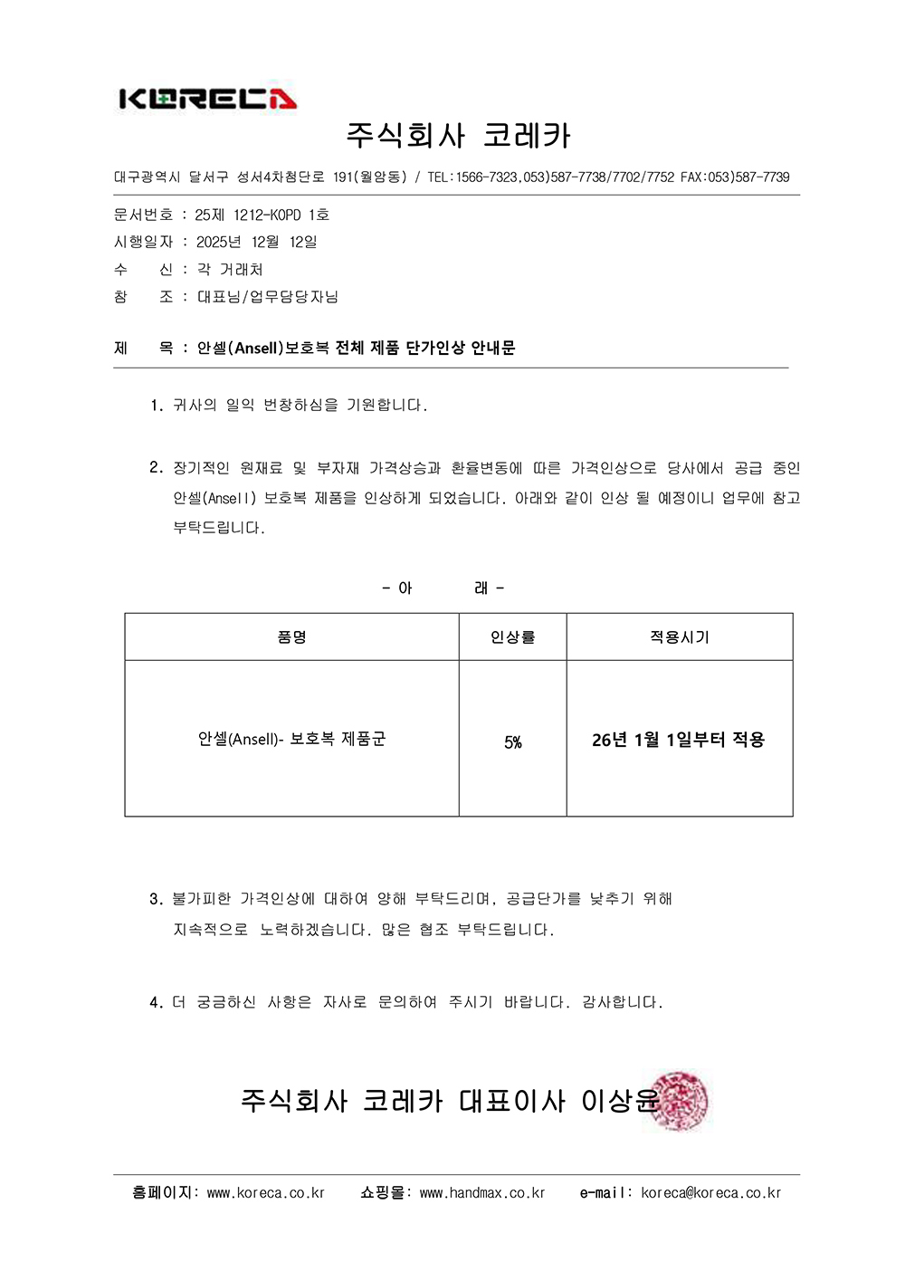 이 사이트는 (주)코레카(Ansell Limited 혹은 그 관계사의 공식 대리점 라이센스가 있는 배포자)에서 소유하고 운영합니다.